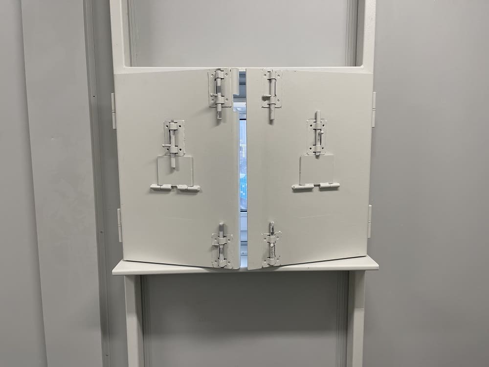 Очередной нестандартный проект. Отделка фасада металлическими кассетами собственного производства, внутренние стены усилены металлическим листом и решеткой, отделка стен панелями гипсоакрил и плиткой, отделка потолка СМЛ панелями. Здание оборудовано автоматическими усиленными рольставнями (4 класс). Часть помещений имеют бронированные окна и двери.